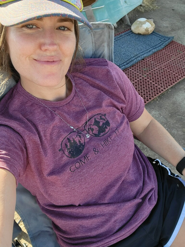 Keely recently wore the first edition version of our COME & HIKE IT t-shirt on a road trip from Arkansas to Canada! We followed her adventure all the way and WOW, it looked life changing! From eclectic AirBnBs, cute cabins, wagon cabins, tent sites and a teepee, she visited all of the coolest spots as she headed north; several places include, Rio Grande Gorge Bridge, Blue Heart Springs, Hagerman, Idaho, Craters of the Moon National Park, Moab, Utah, Arches National Park, Partition Arch, the Salt Flats, Great Salt Lake and Glacier National Park!
